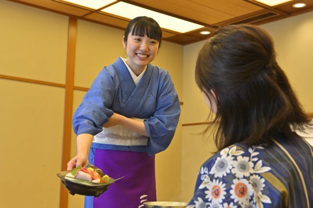 ・お客様のお出迎え、お見送り。客室、温泉など館内施設のご利用案内と接遇全般。